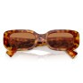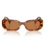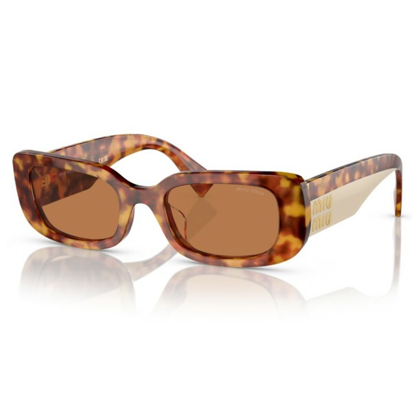 A armação em acetato havana claro oferece um equilíbrio perfeito entre sofisticação e leveza, enquanto as lentes em tom marrom garantem proteção total contra os raios UVA e UVB, proporcionando conforto e estilo em qualquer ocasião. As hastes largas em dois tons trazem o icônico logo Miu Miu em destaque, conferindo identidade e exclusividade ao modelo.